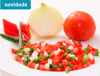 No recebimento, os vegetais passam por análise, pré-limpeza com retirada das partes externas, corte e tripla sanitização.
